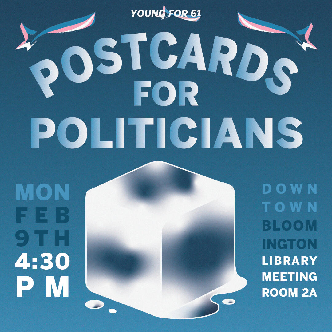 2/09/2026Join me at the Downtown Bloomington Library, Monday February 9 at 4:30 pm, and write and decorate your own personalized postcards to city and county officials, urging them to cut the Flock contracts and stop aiding ICE!